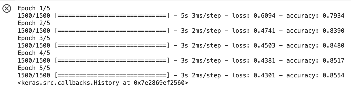 model.fit(train_scaled, train_target, epochs = 5)