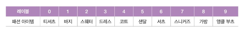 패션 MNIST의 타깃은 0~9까지의 숫자 레이블로 구성된다.