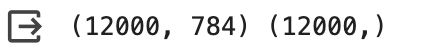 60,000개 중에 12,000개가 검증 세트로 분리되었다.