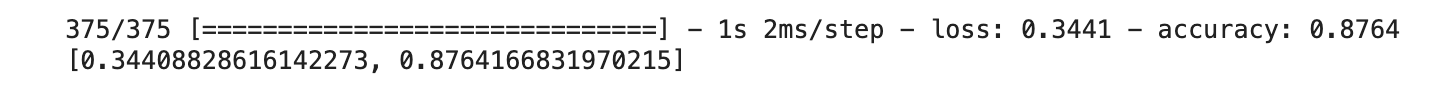 검증 세트에서의 성능도 아래 코드를 통해 확인 가능하다.