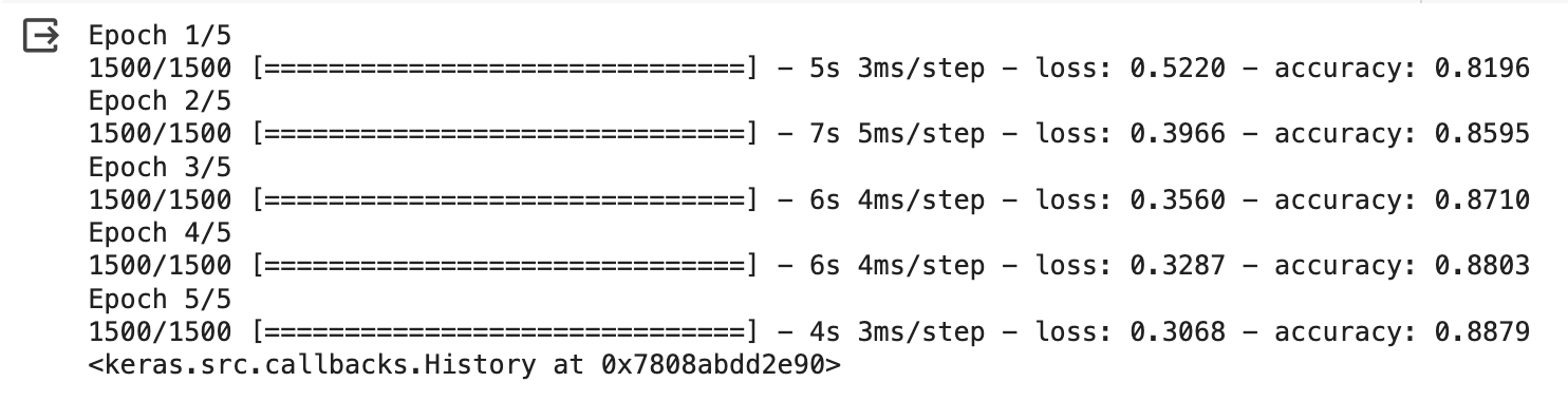 model.fit(train_scaled, train_target, epochs = 5)