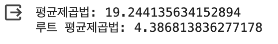 print('루트 평균제곱법:', np.sqrt(metrics.mean_squared_error(y_test, y_pred)))
