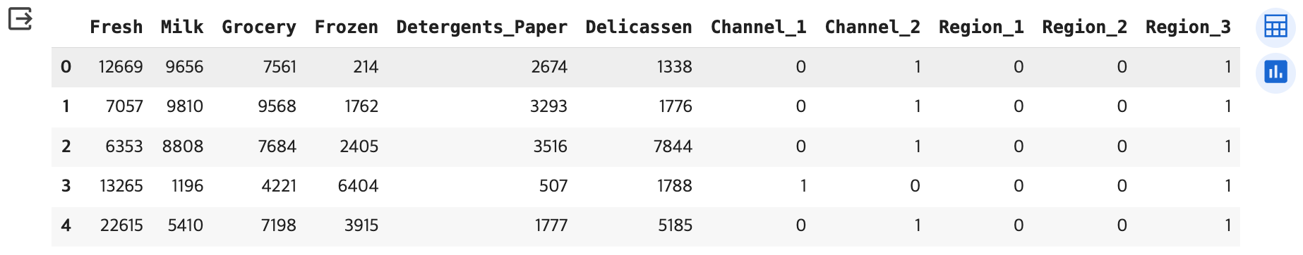 continuous_features = ['Fresh', 'Milk', 'Grocery', 'Frozen', 'Detergents_Paper', 'Delicassen']