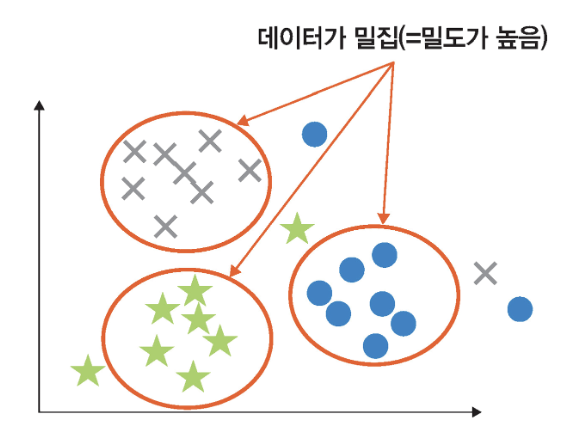 밀도 기반 군집 분석(Density-Based Spatial Clustering of Applications with Noise, DBSCAN)은 일정 밀도 이상을 가진 데이터를 기준으로 군집을 형성하는 방법이다.