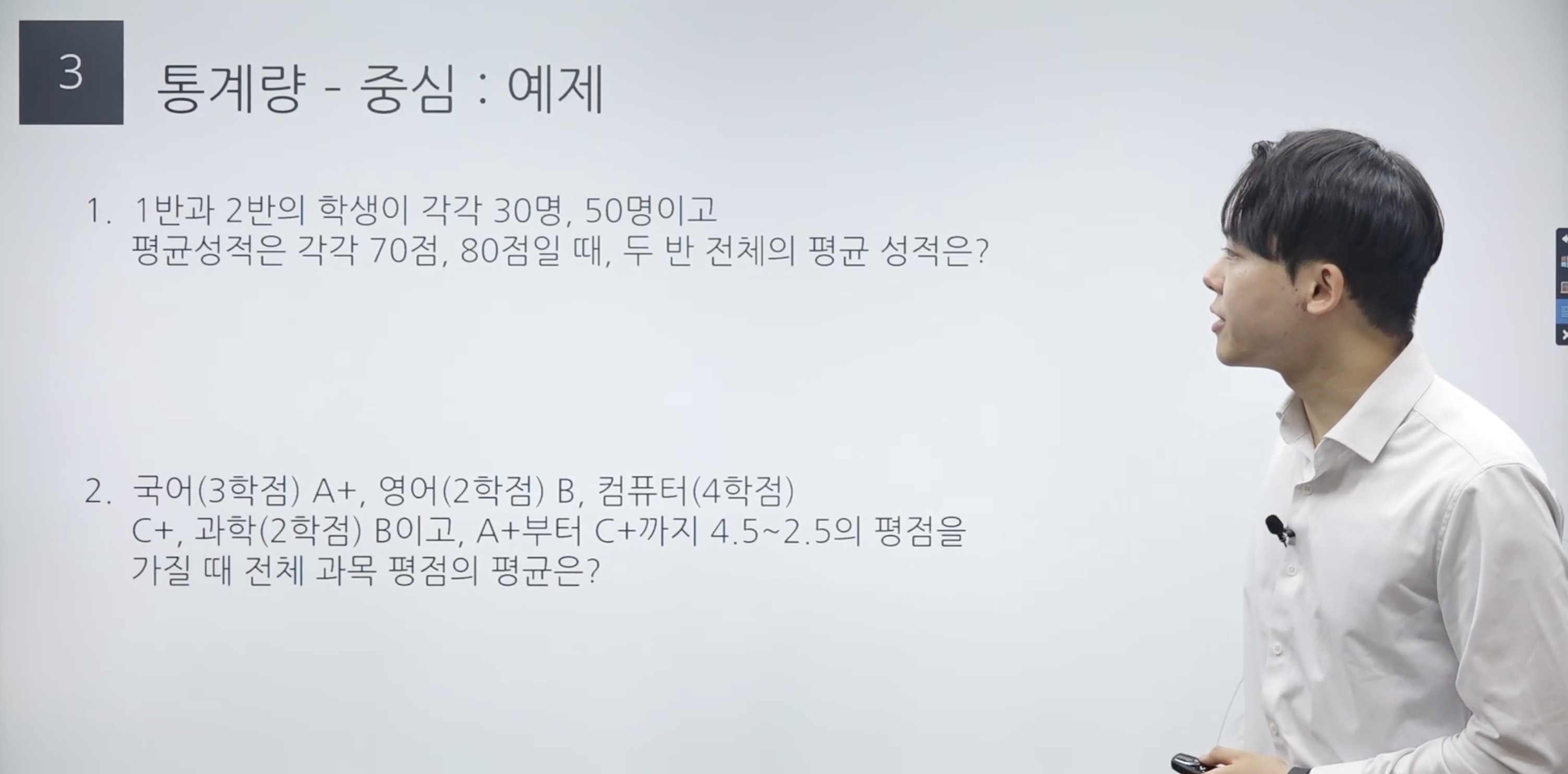 -> 각 자료의 각 중요도를 곱해서 모두 더한 후 가중치의 합으로 나누어 준다.