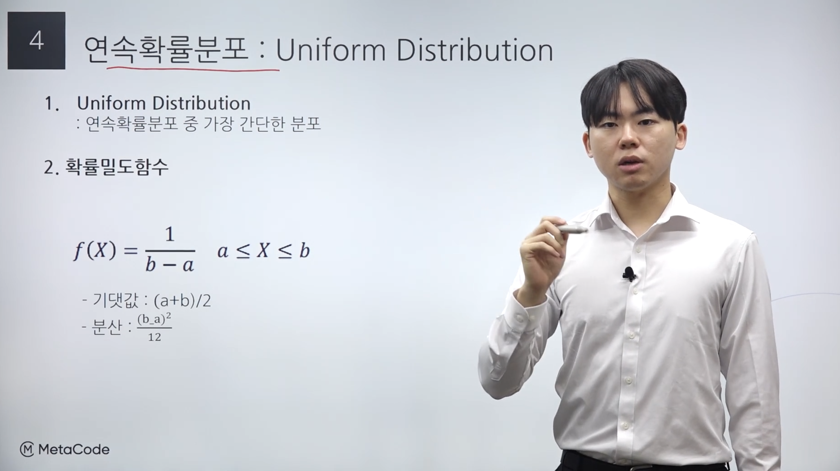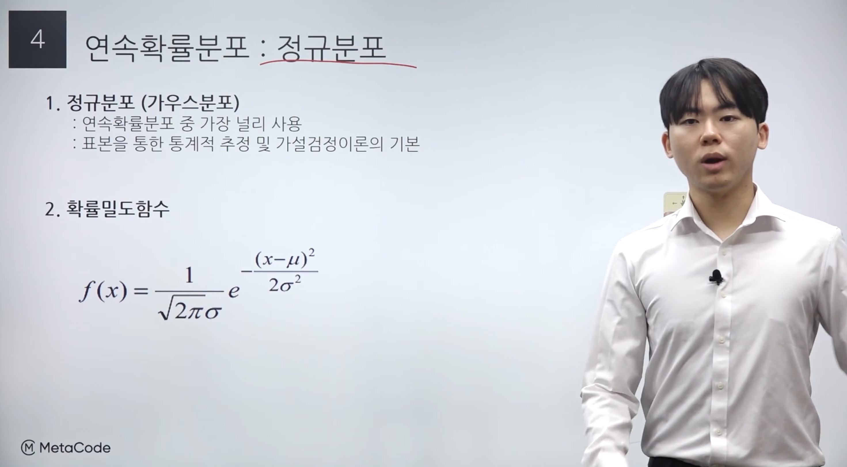 위 내용은 메타코드 "통계 기초의 모든것 올인원"강의의 1편 1강 : 연속확률분포의 요약 내용입니다.