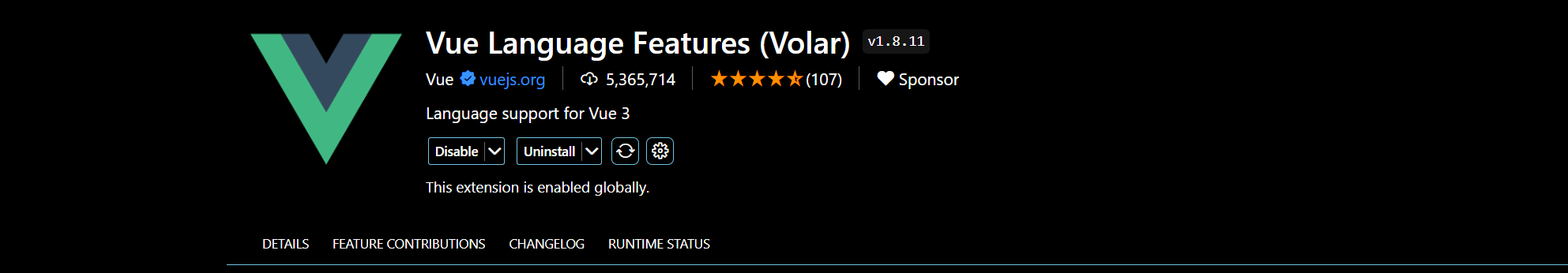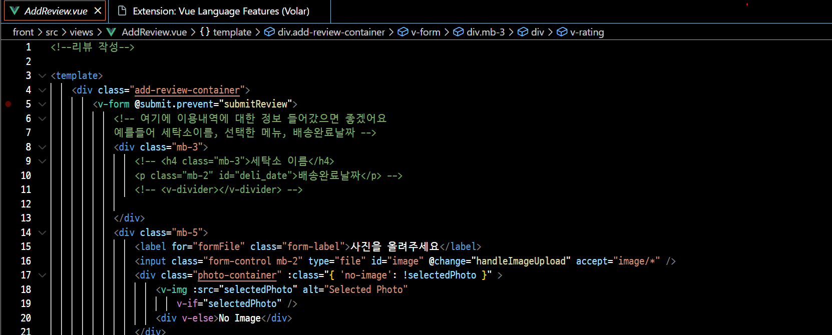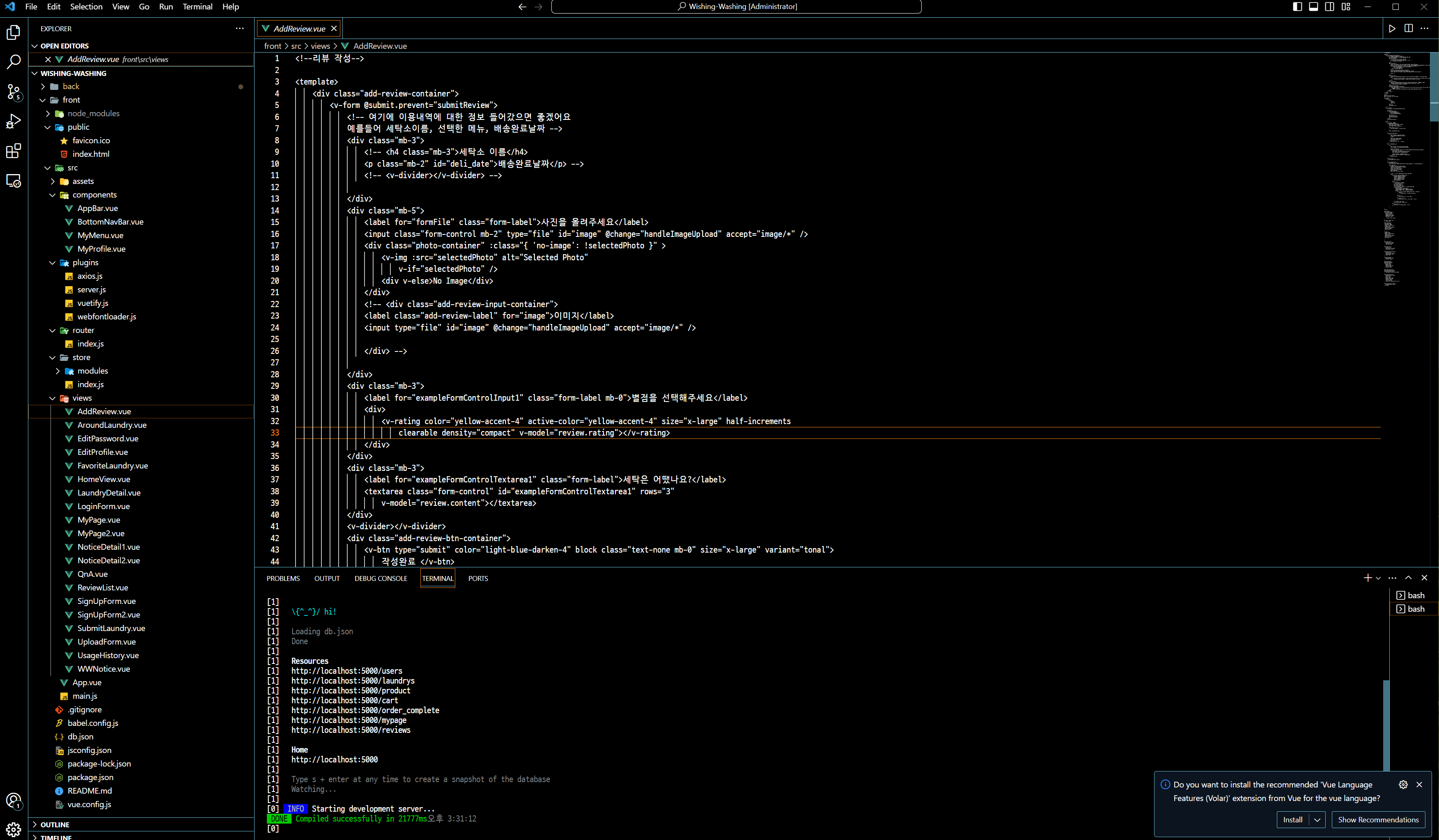 위 캡처본의 우측 하단에 보면 Vue Language Features를 install하라는 알람이 뜬다.