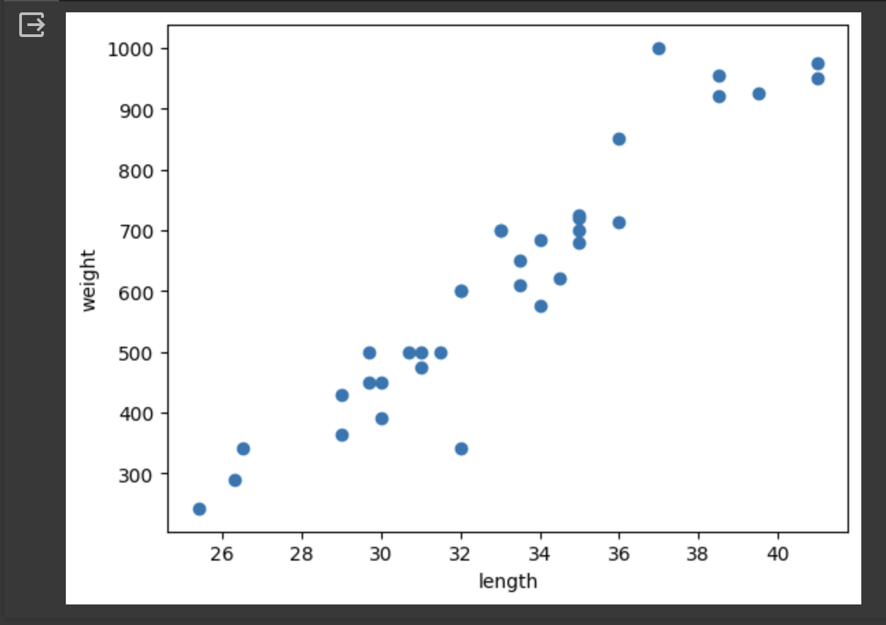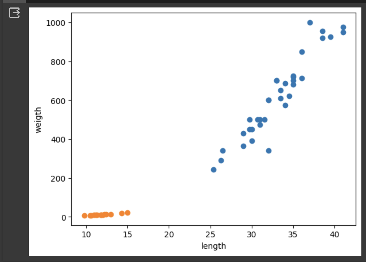 위와 같은 산점도를 가질 때 (30, 600)에 위치한 데이터는 도미라고 판단하게 된다.