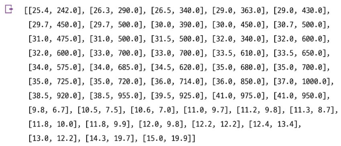 fish_data = [[l, w] for l, w in zip(length, weight)]