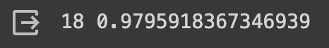 위 코드를 통해 정확도가 1보다 작지만 가장 1에 근접한 수를 찾을 수 있다.
